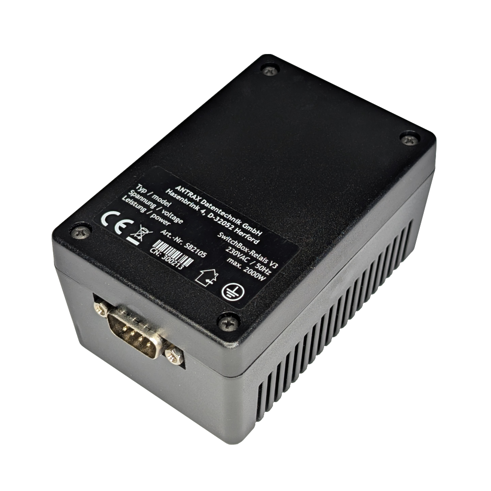 SwitchBox nicht über das Protokoll der seriellen Schnittstelle angesprochen, sondern mit Hilfe der Schnittstellen-Steuerleitungen DTR und RTS). Der erforderliche Schaltstrom ist "winzig" und nicht größer als für das Ansteuern einer kleinen Leuchtdiode (LED) erforderlich ... ca. 10-15mA (über den gesamten Spannungsbereich!). Anschluss der Steuerspannung über einen SUB-D-Stecker oder einen steckbaren Schraubklemm-Kontakt.